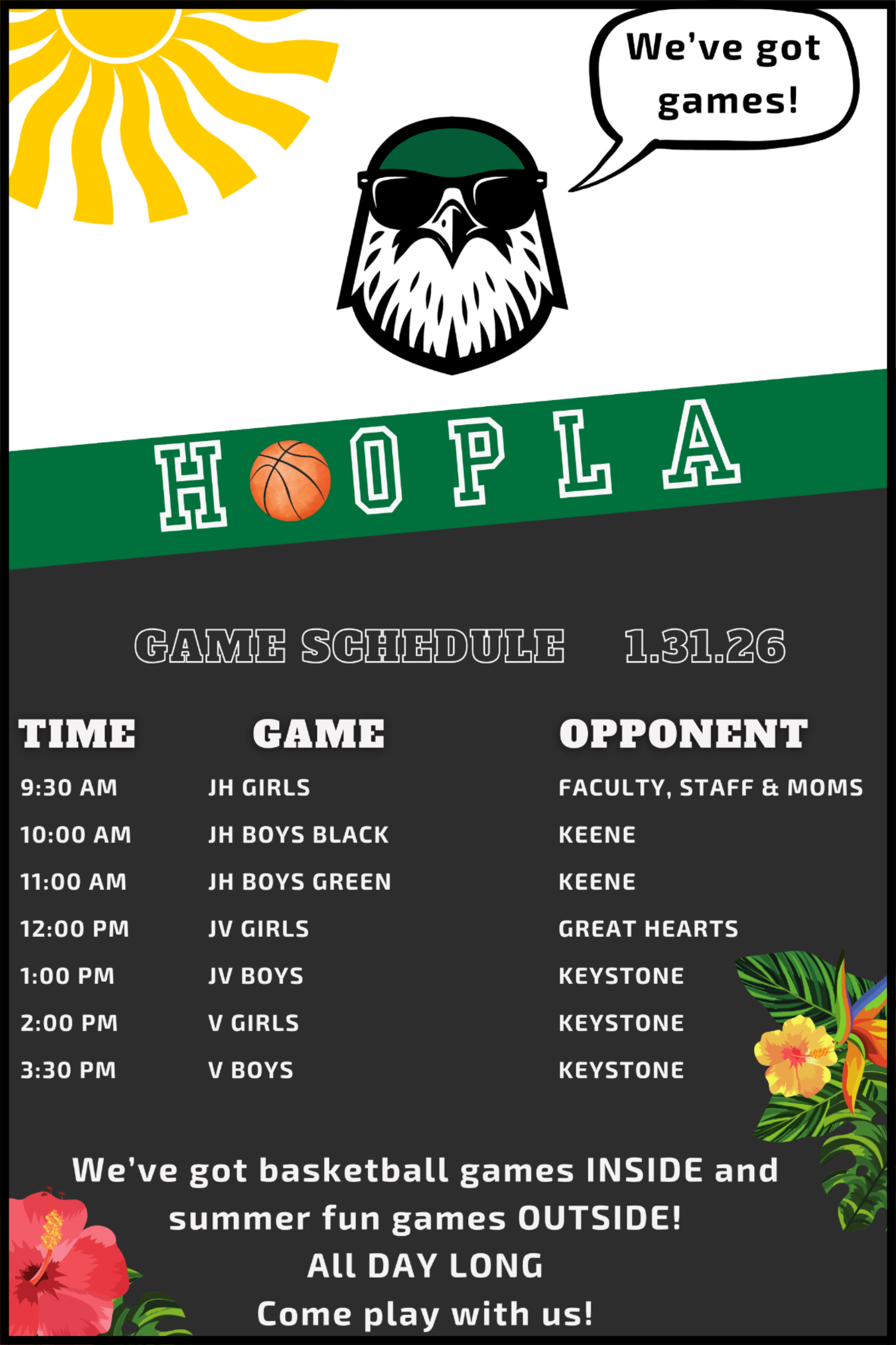 We have games for everyone at Hoopla! Whether you’re a kid or kid at heart, you can play basketball inside or join some classic summer games outside. We can’t wait to play with our Live Oak families all day long!