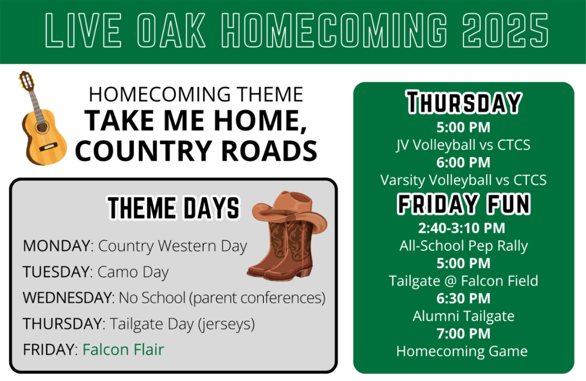 Homecoming is just a few weeks away! Make your plans now for the theme day dress days and mark your calendar for all the festivities…more info coming soon! |